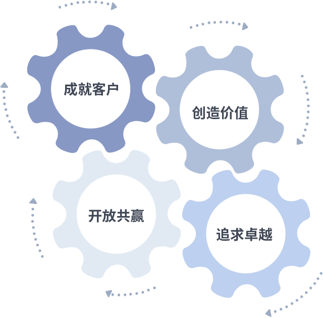 成就客户是一切决策的出发点,创造价值是衡量所有工作的标准,追求卓越是PA尊龙时凯做事做人的态度,开放共赢是PA尊龙时凯的格局也是最终的结果。价值观的齿轮环环相扣,推动着组织里的每个人不断向前。